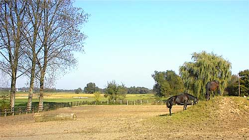 ![]() Der Reitplatz befindet sich hinter dem Haus. Hier befinden sich einige natürliche Hindernisse und ein abgegrenzter Dressur-Paddock. |