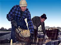 Diese fleißigen Frauen und kräftigen Männer wohnen in einer extra gebauten Blockhütte mit eigener Küche und sanitären Einrichtungen. Wenn sie sich nicht wohlfühlen würden, kämen sie nicht jedes Jahr wieder! |